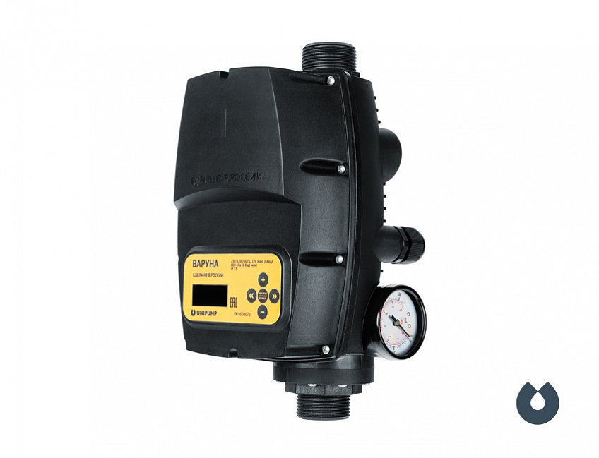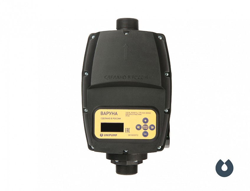 Частотный преобразователь UNIPUMP ВАРУНА — электронный блок, автоматически управляющий функциями остановки и пуска двигателя однофазного насоса мощностью до 2,2 кВт, при максимальной номинальной частоте до 50 Гц. Частотник модулирует частоту (Гц) входного тока двигателя насоса, изменяя скорость его вращения, в зависимости от потребности воды в системе. При этом давление в системе поддерживается на одном, заданном пользователем уровне, а мощность, потребляемая двигателем насоса, пропорциональна величине потока расходуемой воды, что позволяет существенно экономить электроэнергию при постоянно изменяющемся водопотреблении в течение суток.