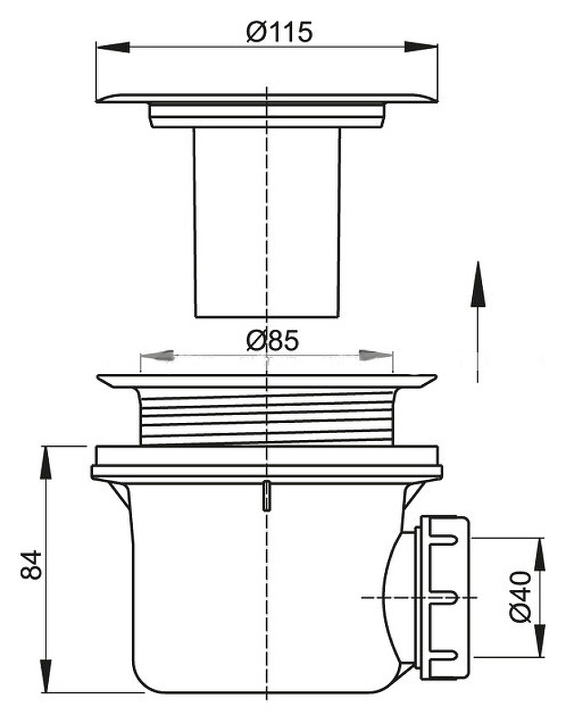 Сифон для поддона AlcaPlast A48. Для слива диаметром 9 см. Диаметр подключения 4 см.