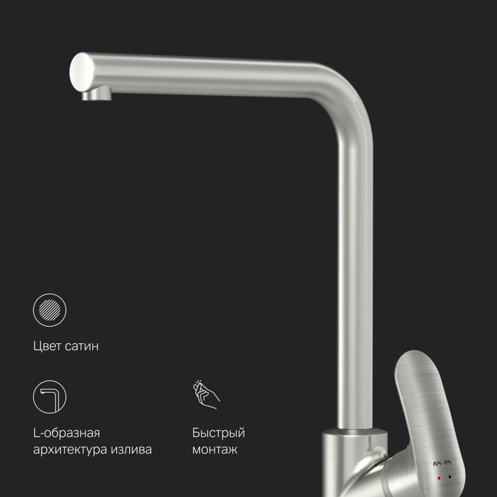 Cмеситель для кухни AM.PM Like L-образный излив, сатин (F8005011)