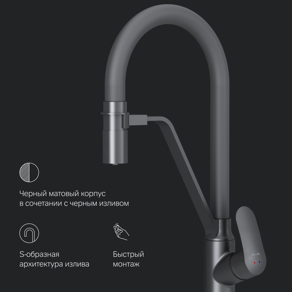 Cмеситель для кухни AM.PM Like с каналом для питьевой воды и гибким изливом, черный (F8007822)