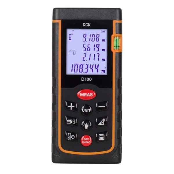 Лазерный дальномер D100 – это самый функциональный прибор из линейки лазерных рулеток RGK. Возможности этого профессионального измерительного инструмента удовлетворят любого, даже самого требовательного строителя, значительно упростит процесс измерений, повысив их эффективность, сократит время выполнения работ.