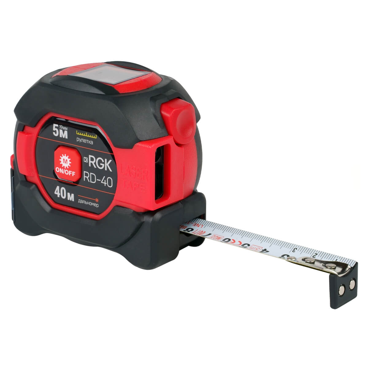Лазерный дальномер с рулеткой RGK RD-40 - это универсальный измерительный инструмент, незаменимый при проведении столярных или строительных работ. Удачное сочетание функций позволяет решать самые разные задачи и значительно упрощает замеры помещений, конструкций и деталей сложной формы.