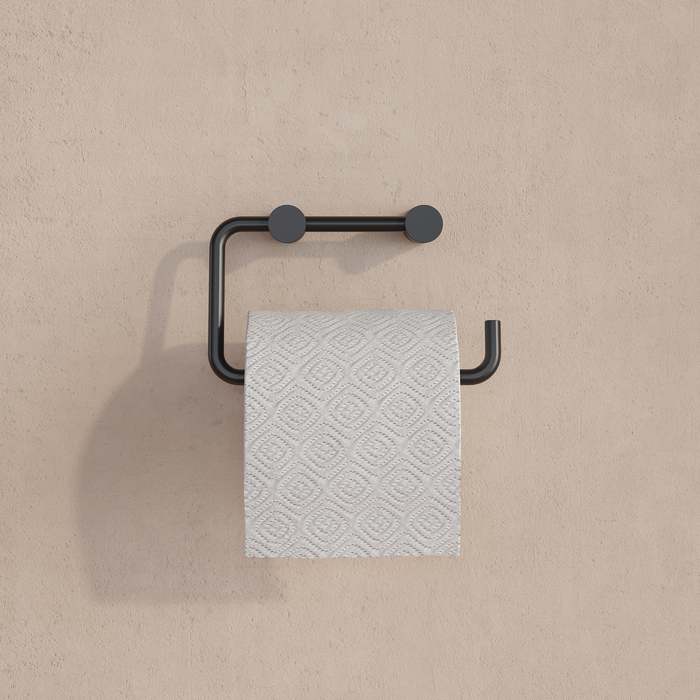 Держатель для туалетной бумаги без крышки, материал изделия Сплав металлов, цвет - Черный матовый. Крепеж в комплекте. Упаковка - Цветная картонная коробка.