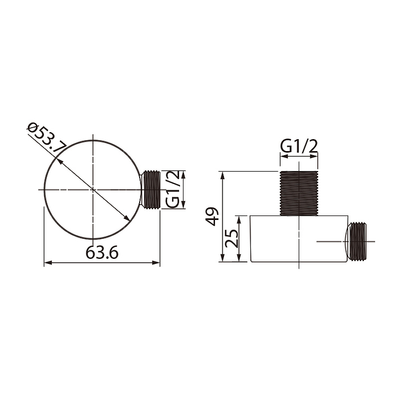 Выход для шланга без держателя для лейки, для встраиваемой системы, круглое основание, материал латунь, цвет черный. Упаковка - картонная коробка.