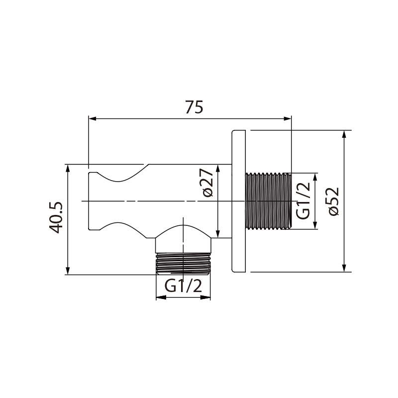 Выход для шланга с держателем для лейки для встраиваемой системы, круглое основание, материал латунь, цвет хром, хромоникелевое покрытие.