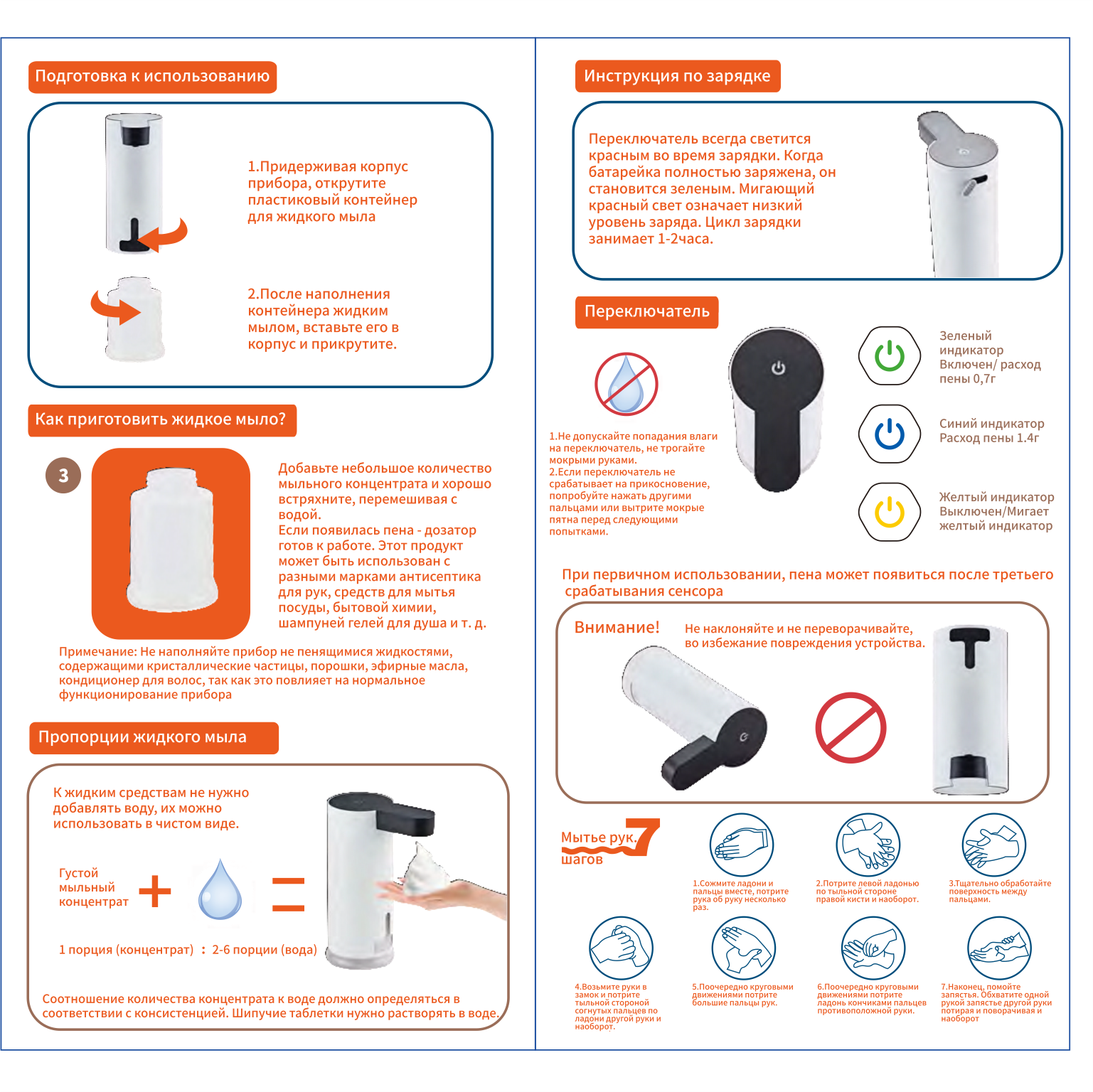 2-х режимная сенсорная регулировка дозировки подачи моющего средства: 0,7 гр./1,4 гр.