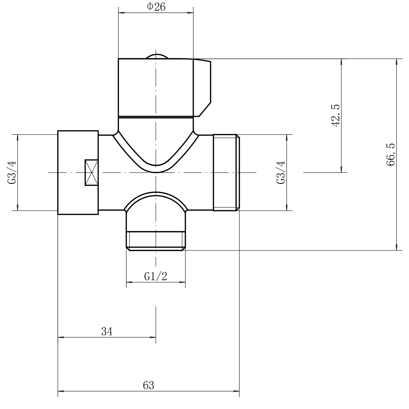 верхняя гайка 3/4', нижний выход 3/4', выход на шланг 1/2""