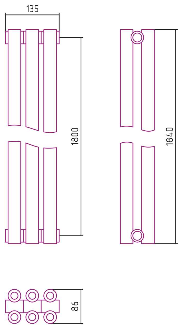 Дизайн-радиатор Сунержа Эстет-00 1800*135 3 секции золотой (03-0332-1803)