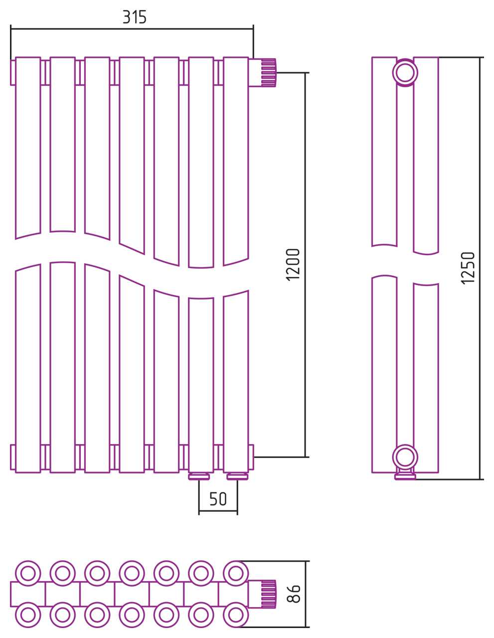 Дизайн-радиатор Сунержа Эстет-00 EU50 1200*315 7 секций хром (00-0322-1207)