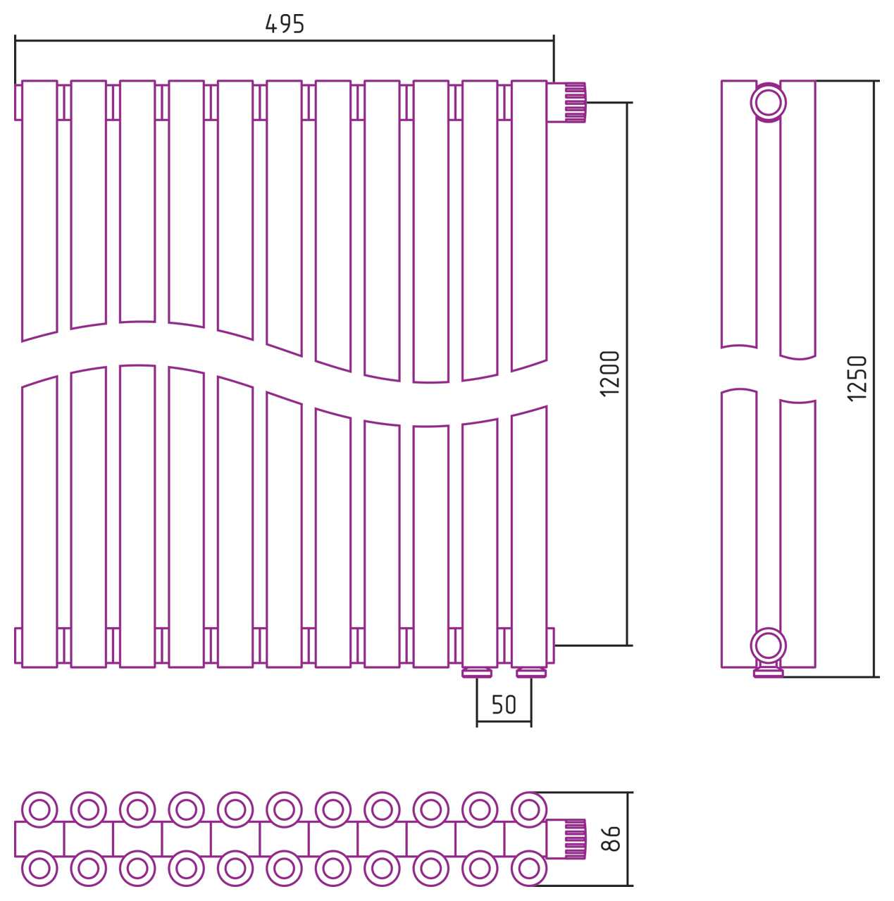 Дизайн-радиатор Сунержа Эстет-00 EU50 1200*495 11 секций хром (00-0322-1211)