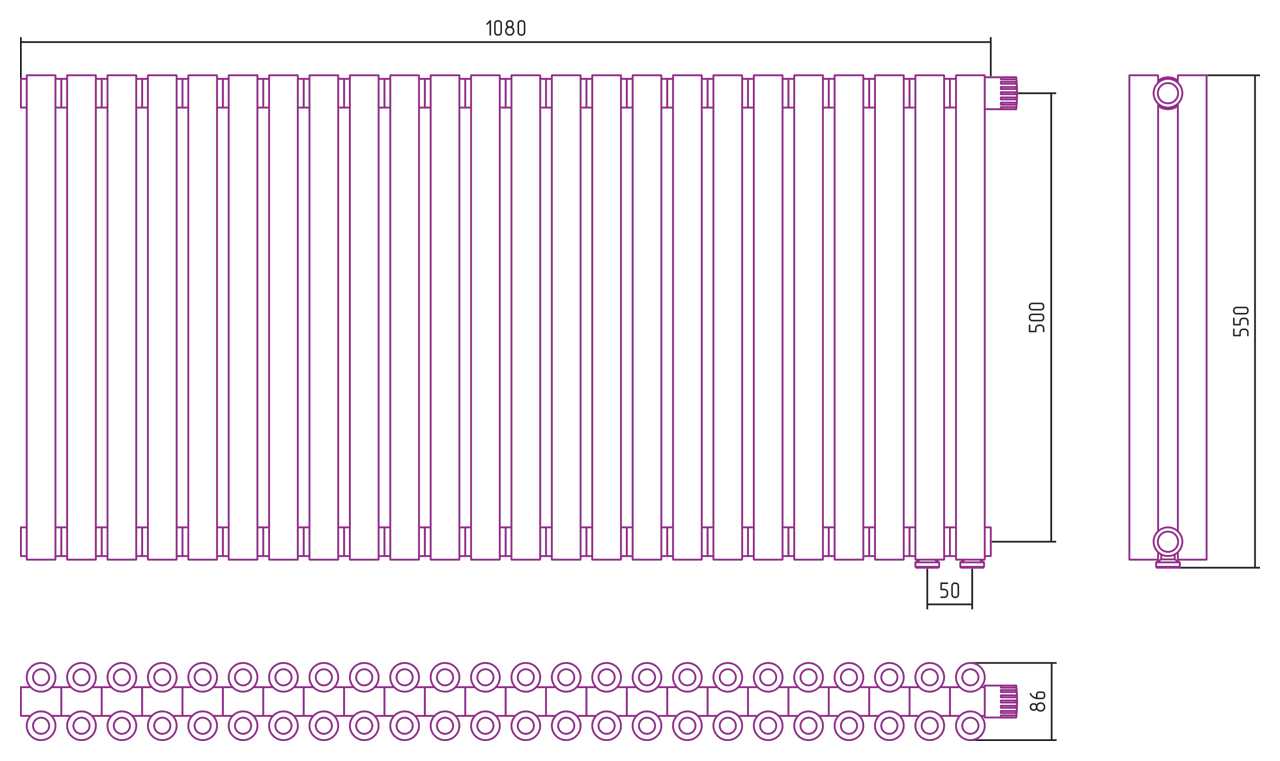 Дизайн-радиатор Сунержа Эстет-00 EU50 500*1080 24 секции хром (00-0322-5024)