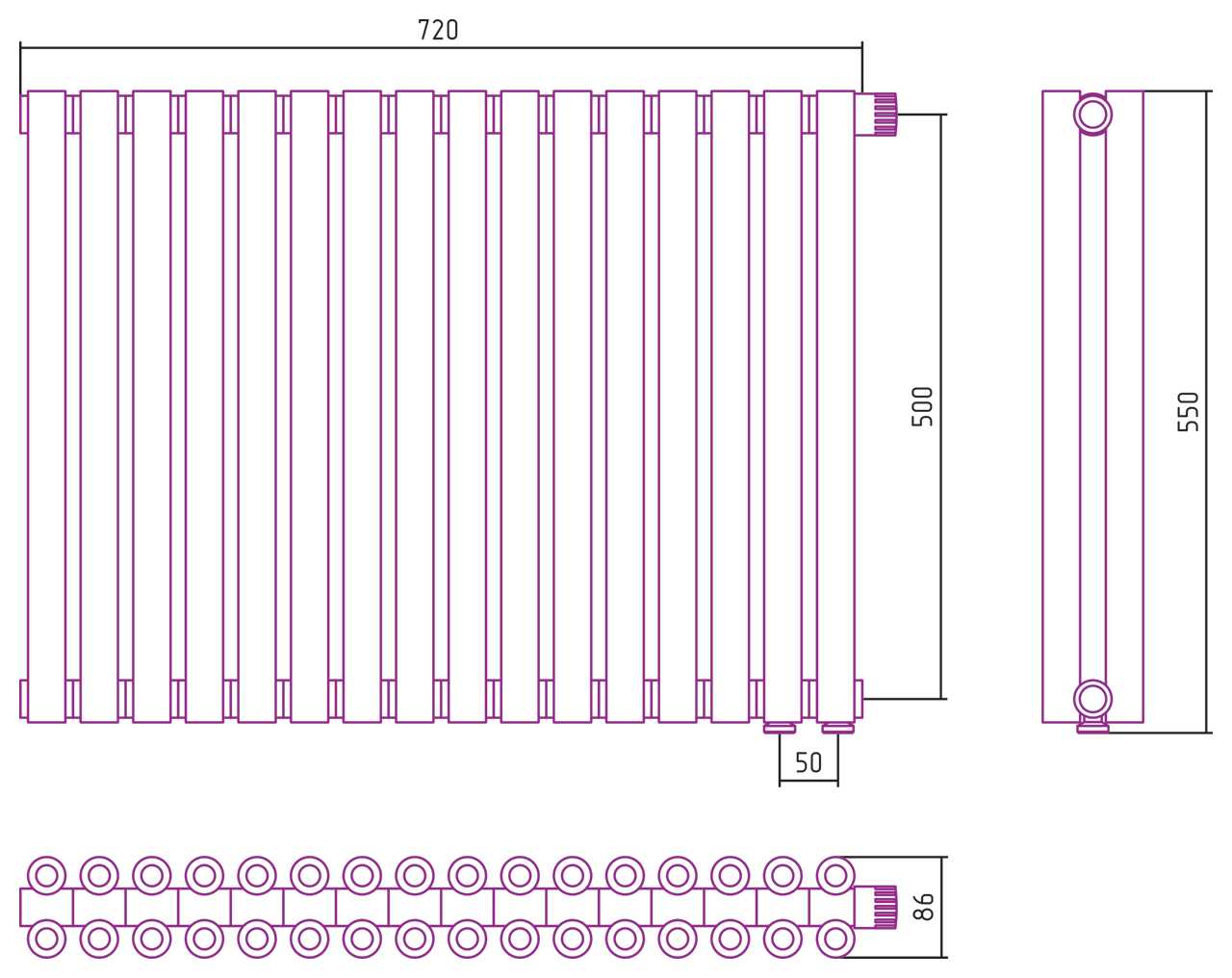 Дизайн-радиатор Сунержа Эстет-00 EU50 500*720 16 секций белый (12-0322-5016)