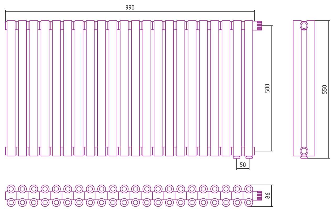 Дизайн-радиатор Сунержа Эстет-00 EU50 500*990 22 секции хром (00-0322-5022)