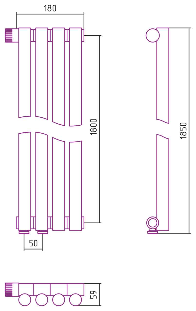 Дизайн-радиатор Сунержа Эстет-1 EU50 левый 1800*180 4 секции хром (00-0310-1804)