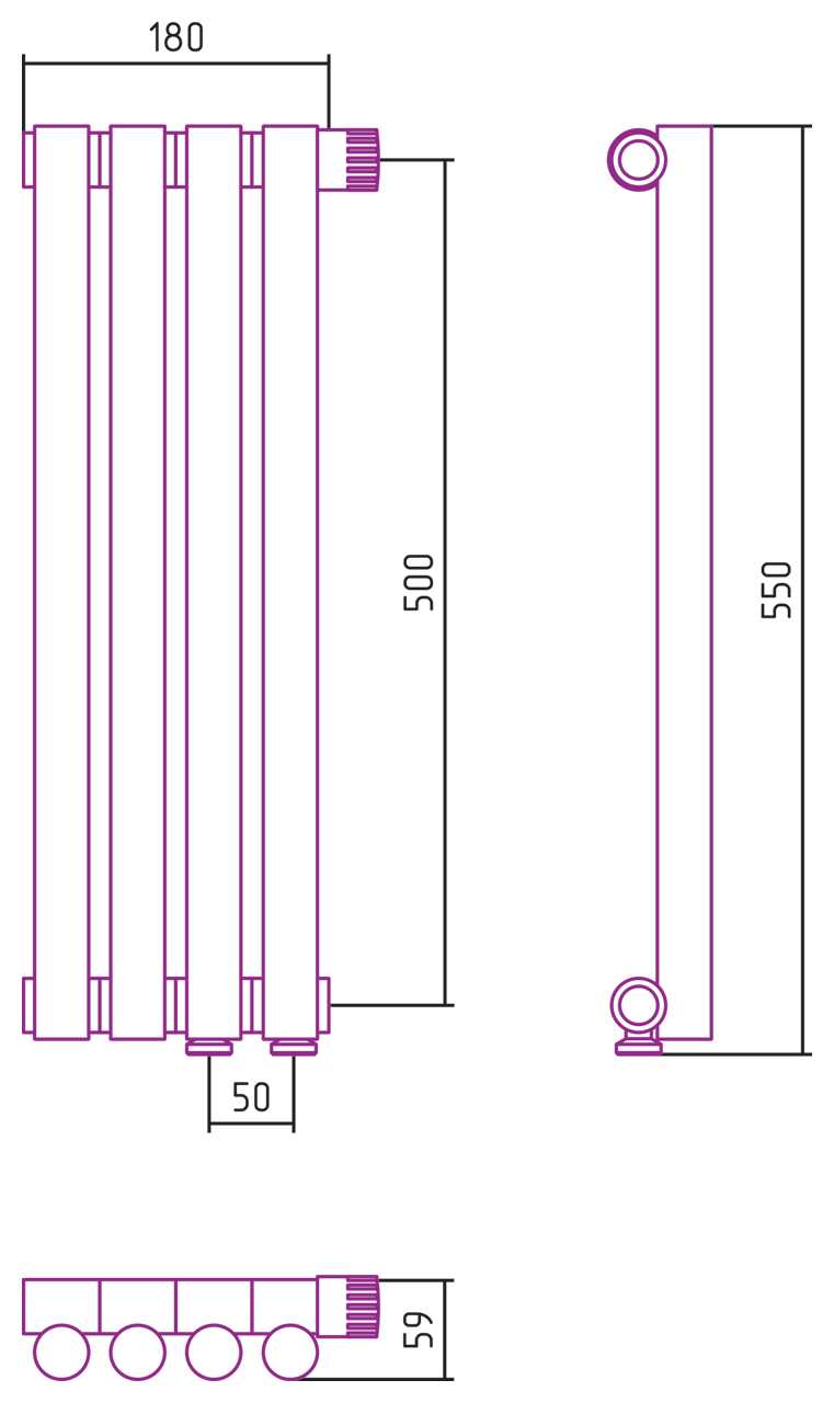 Дизайн-радиатор Сунержа Эстет-1 EU50 правый 500*180 4 секции белый (12-0311-5004)