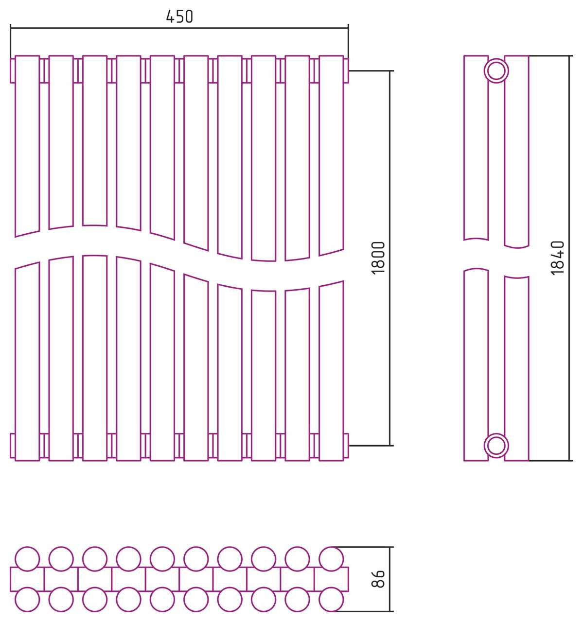 Дизайн-радиатор Сунержа Эстет-11 1800*450 10 секций хром (00-0302-1810)