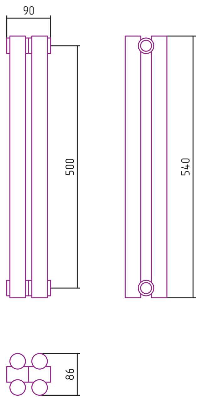 Дизайн-радиатор Сунержа Эстет-11 500*90 2 секции хром (00-0302-5002)