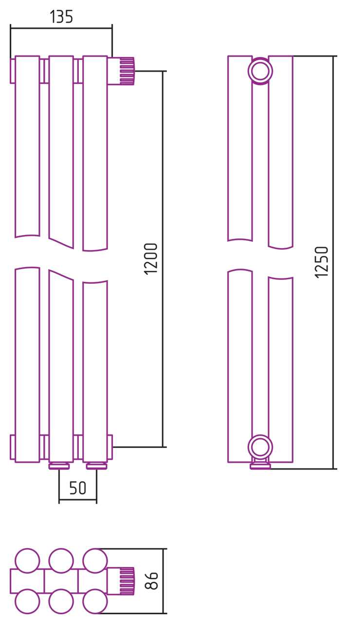 Дизайн-радиатор Сунержа Эстет-11 EU50 1200*135 3 секции хром (00-0312-1203)