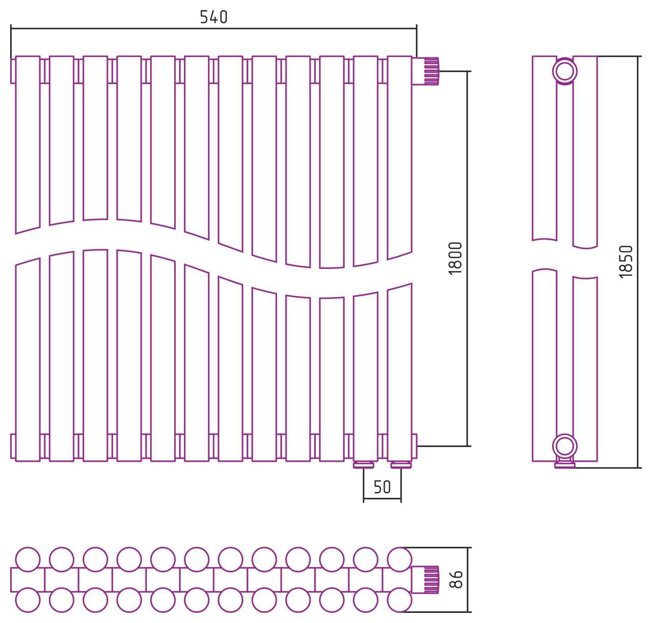 Дизайн-радиатор Сунержа Эстет-11 EU50 1800*540 12 секций белый (12-0312-1812)