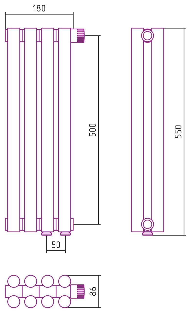 Дизайн-радиатор Сунержа Эстет-11 EU50 500*180 4 секции белый (12-0312-5004)