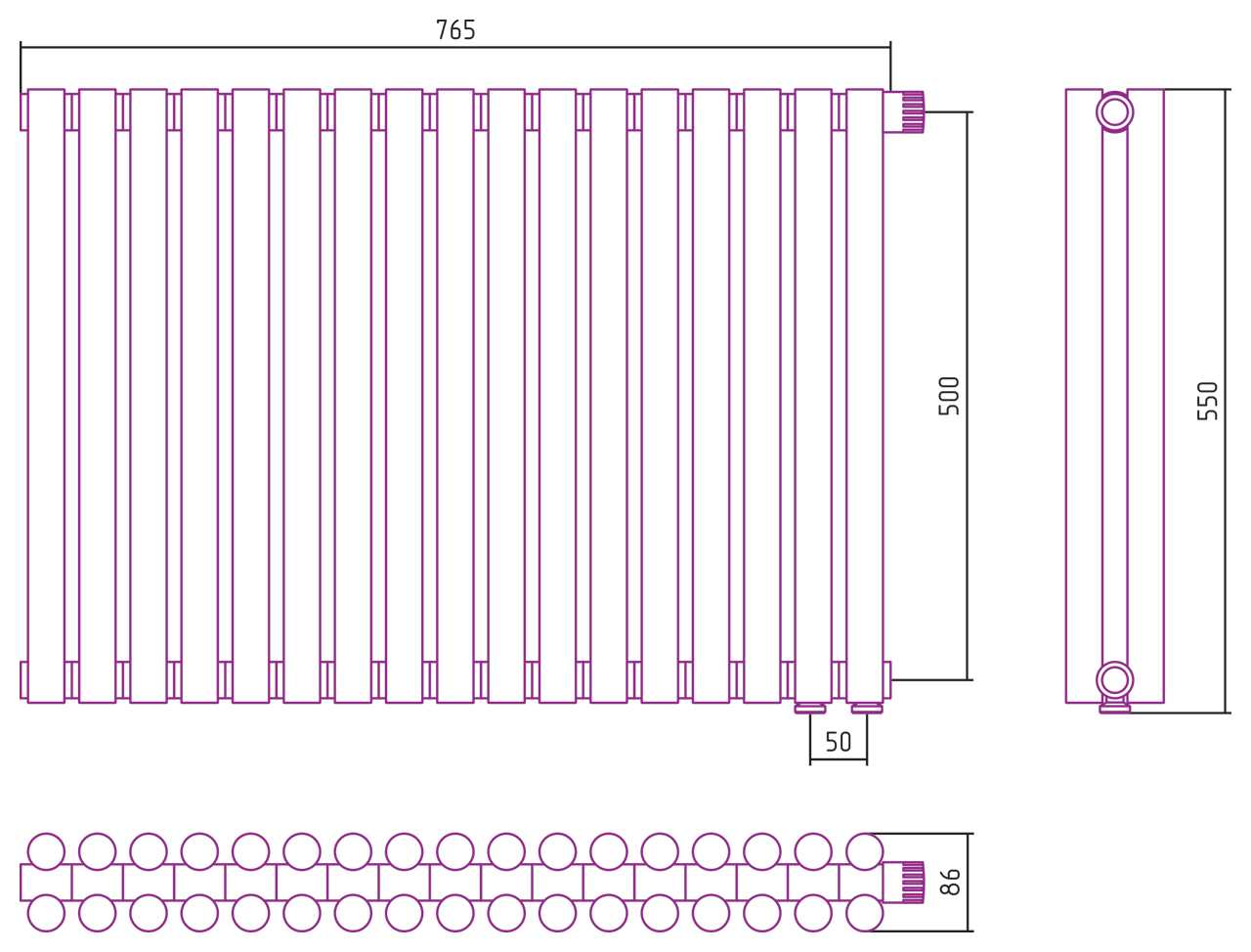 Дизайн-радиатор Сунержа Эстет-11 EU50 500*765 17 секций белый (12-0312-5017)
