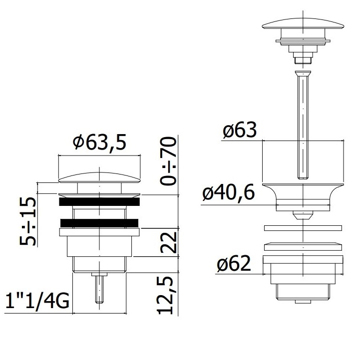 - Донный клапан Paffoni ZSCA050CR, универсальный, хром