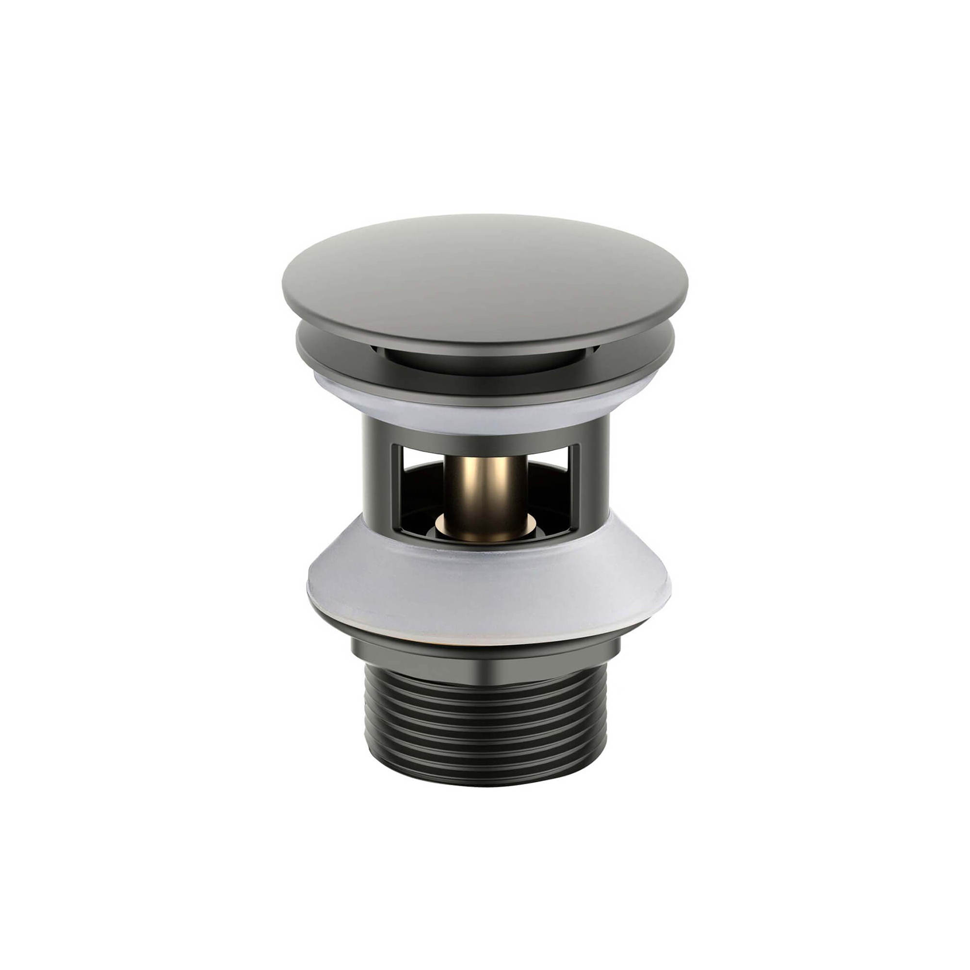 Донный клапан Aquatek Push-open с переливом, крышка круглая, шлифованное черный хром (AQ6002BGM)