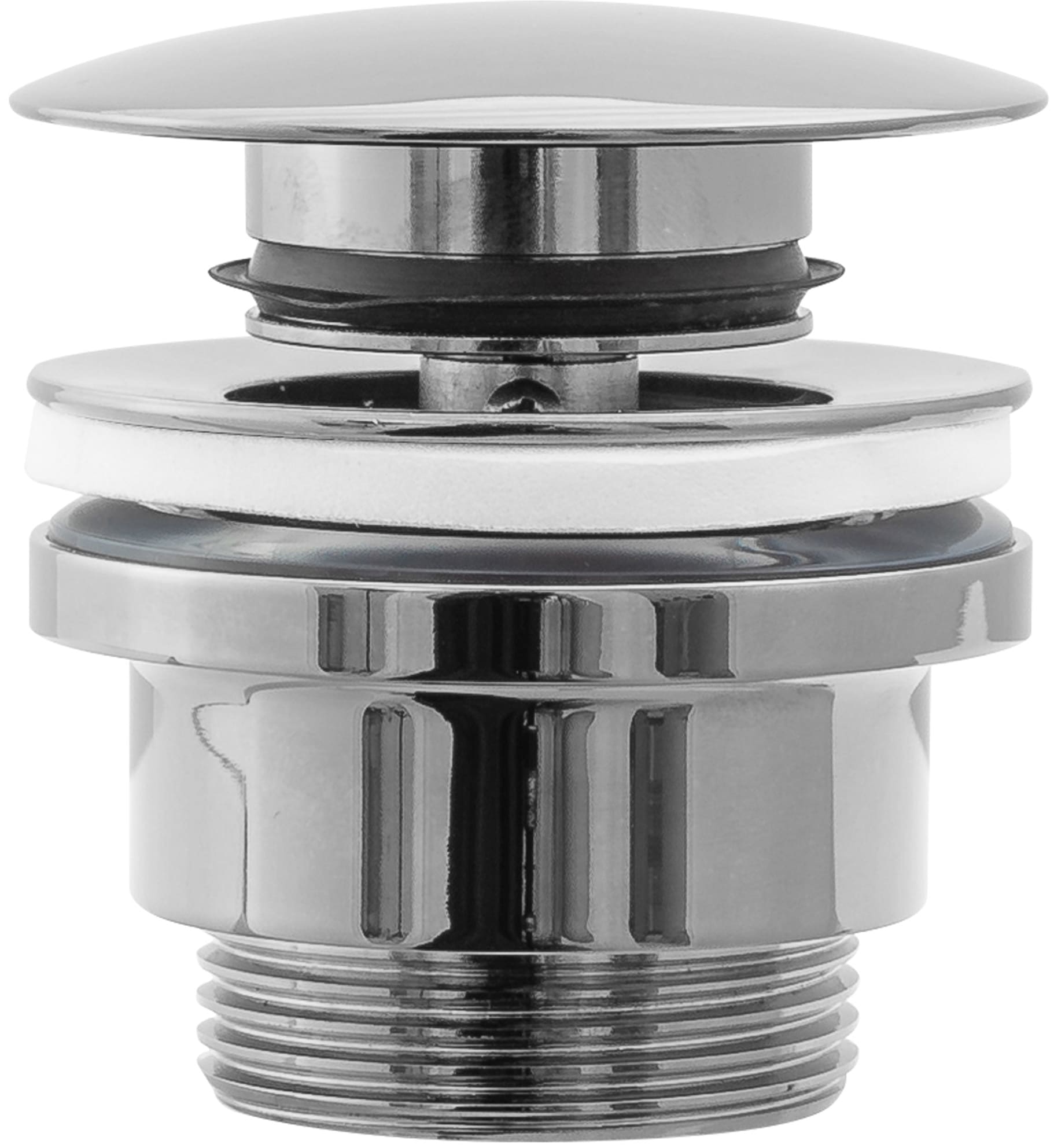 Запираемый выпуск с большой хромированной заглушкой круглой формы.