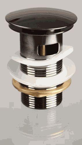 Донный клапан CLICK-CLACK c большой кнопкой, c переливом, black матовый TERMA 10111 Донный клапан позволяет набирать в умывальник необходимое количество воды и сливать ее, когда она не нужна, простым нажатием кнопки. Позволяет сократить расходы воды и, как следствие, экономит деньги. Удобен в эксплуатации: привести в действие клапан можно одним пальцем, нажав на кнопку. Стильный дизайн украсит вашу раковину. Предотвращает появление неприятных запахов, которые могут появиться из сливных труб. Материал корпуса - латунь, кнопка - нержавеющая сталь. Благодаря большой длине корпуса клапан подходит к большинству раковин, подключение 1 1/4"". Диаметр кнопки - 66 мм.