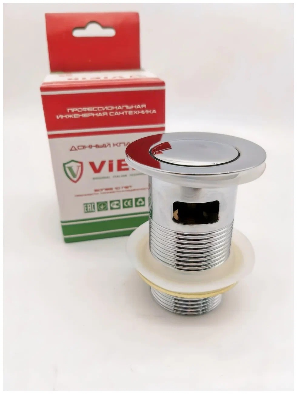 Донный клапан для раковины Vieir 1 1/4" (32 мм.), 37,2 мм. с переливом (нерж. сталь) (VER24B)