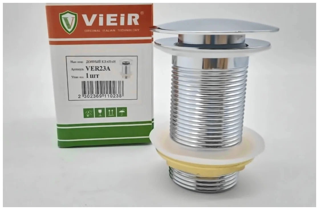 Донный клапан для раковины Vieir 1 1/4" (32 мм.), 66 мм. без перелива (нерж. сталь) (VER23A)
