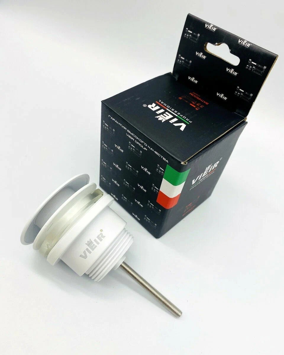 Донный клапан для раковины Vieir 1 1/4" (32 мм.), 67 мм. Quick Clac с переливом (латунь, белый) (VER26YF)