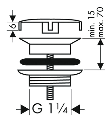 Выпуск Hansgrohe 50001000 с фиксированной пробкой, для раковин и биде без перелива.