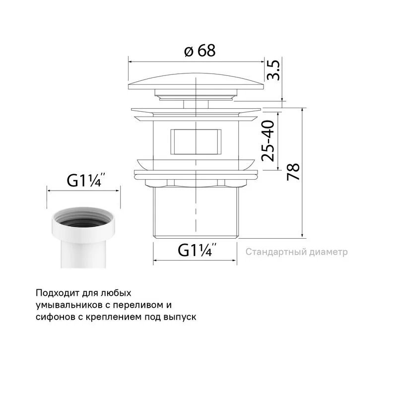 ыпуск Slide в стильном оттенке матового золота предназначен для умывальника с переливом и сделает его вид более эстетичным. Подходит для любых умывальников с переливом. Стандартный диаметр 1.1/4” подойдет для любых сифонов с креплением под выпуск. Можно собрать готовое решение от IDDIS® в одном цвете: сифон, выпуск, смеситель и накладной умывальник, идеально совпадающие по тону. Это освежит интерьер, сделает его цельным. Выпуск делает умывальник более функциональным: нажимая на его крышку, можно перекрыть и снова открыть слив воды из чаши. Корпус выпуска изготовлен из прочной и стойкой к коррозии латуни.