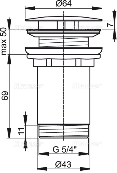 Донный клапан сифона для раковины Alcaplast 5/4" цельнометаллический, белая заглушка (A396)