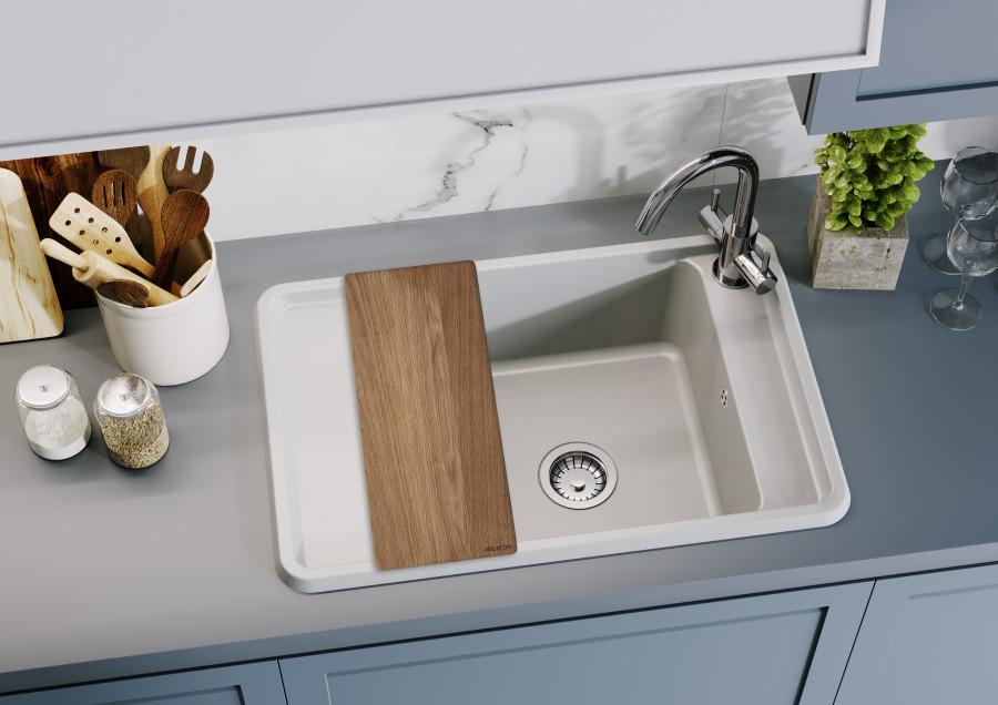 В качестве дополнительного аксессуара для серии кухонных моек Беллис AQUATON предлагает разделочную доску из дуба, которая не оставит равнодушной ни одну хозяйку. Ведь она сделает мойку еще более функциональной и позволит увеличить размер рабочей поверхности, обеспечивая устойчивую износостойкую основу для резки. Практичный и простой в уходе дуб — натуральный материал, который сделает вашу кухню ярче и уютнее!