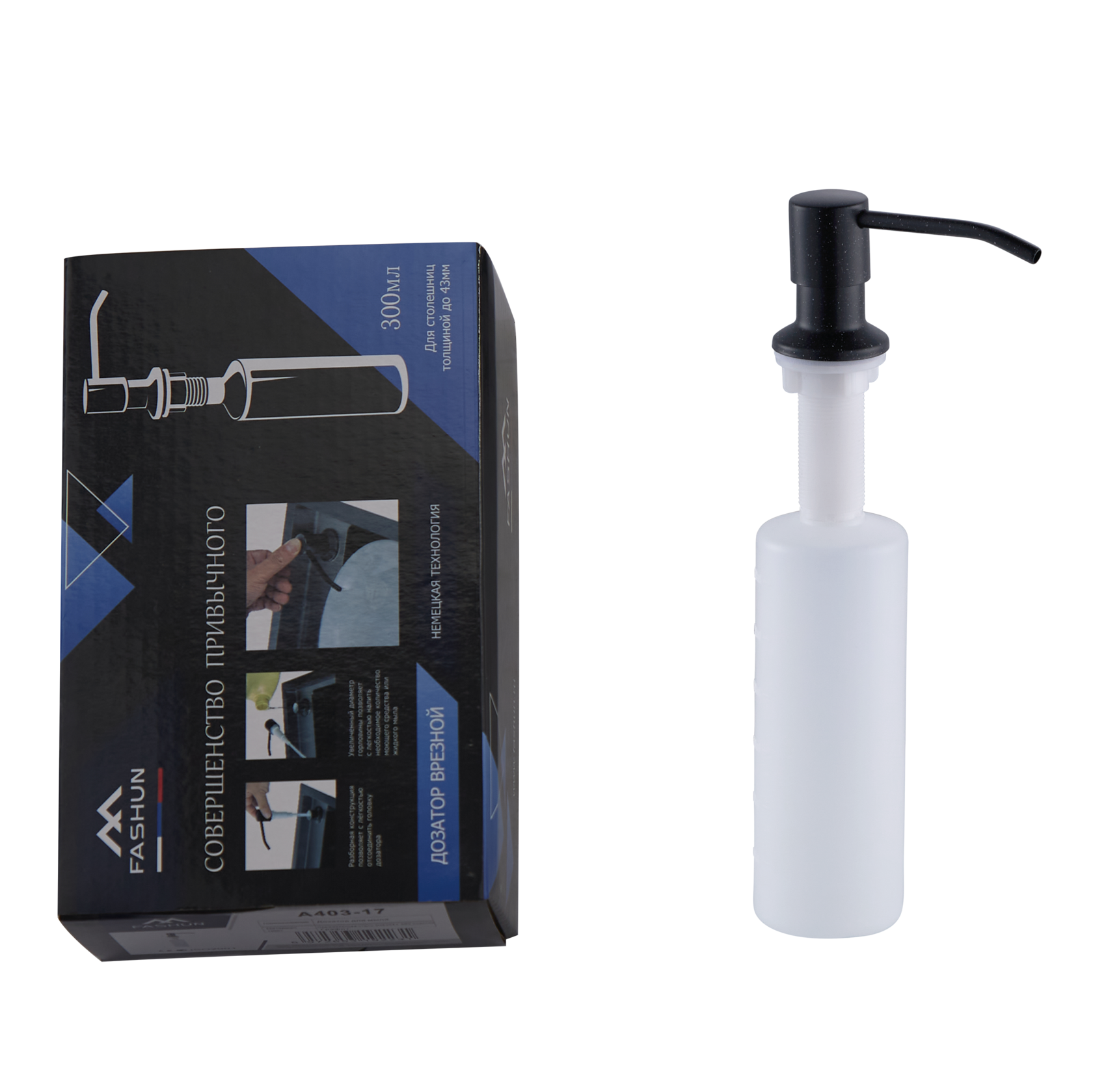 Дозатор для кухонной мойки Fashun с колбой чёрный гранит (A403-7A)