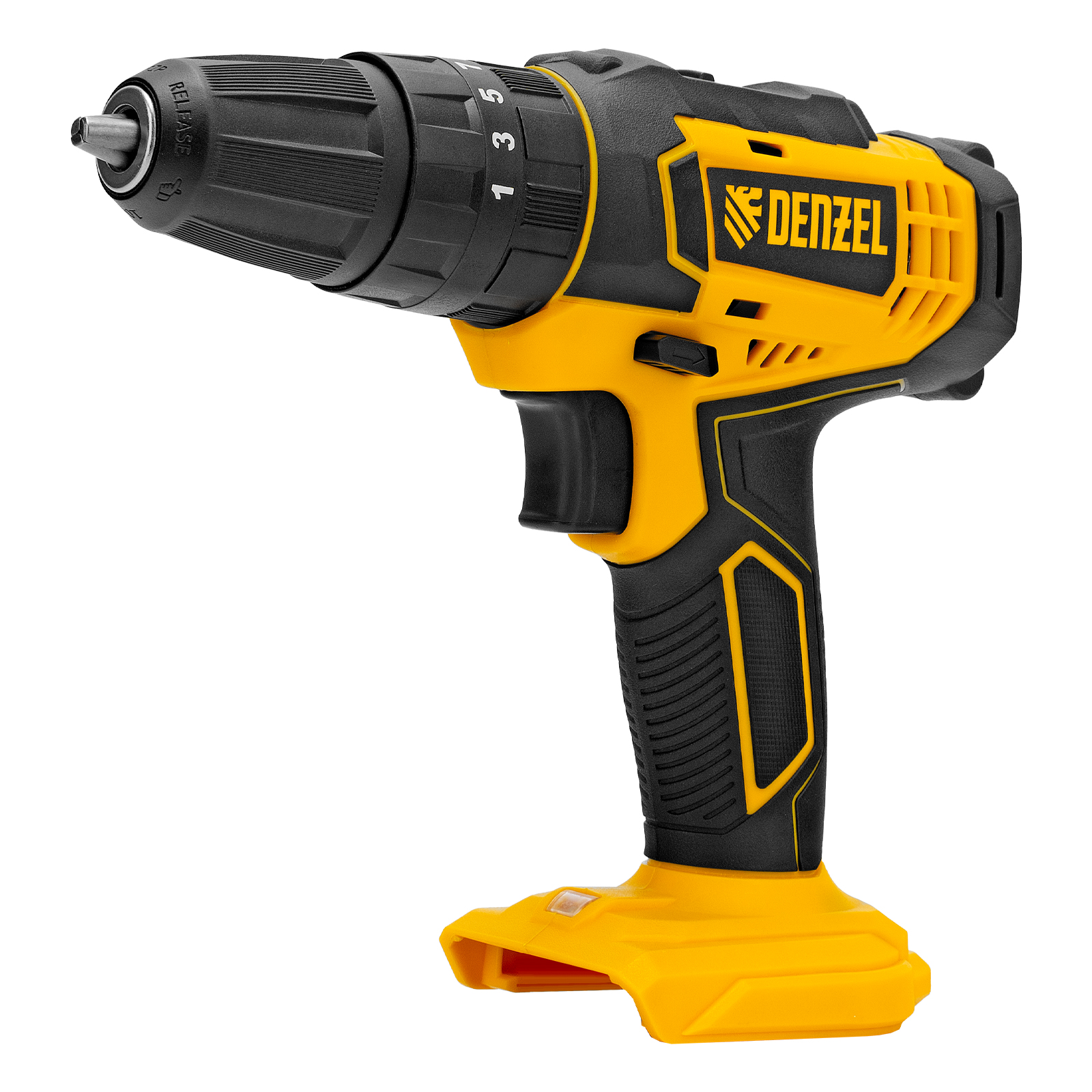 - Универсальность — дрель-шуруповерт совместима с любым Li-Ion аккумулятором и зарядным устройством единой платформы Denzel Battery System 18V.