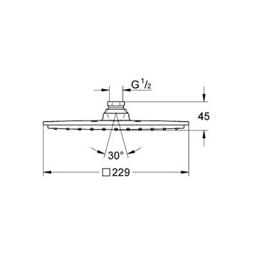 Grohe Sena Cube 27479000 верхний душ. Размер душевой лейки 230х230 мм. На один вид струи. С технологией равномерного распределения воды в каждой душевой форсунке DreamSpray и системой SpeedClean против известковых отложений. Монтаж настенный.