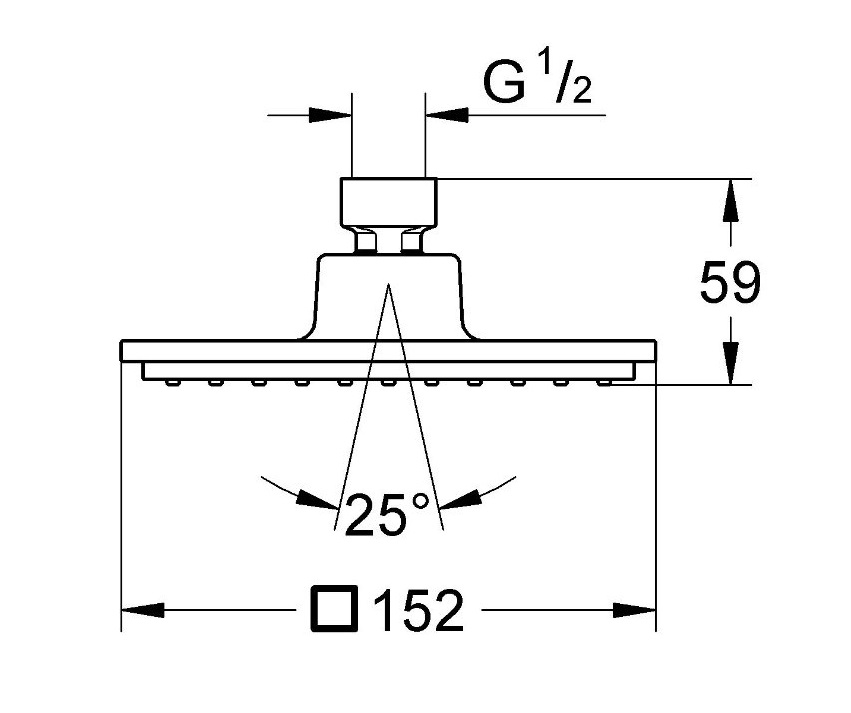 Euphoria Cube 150 верхний душ с одним режимом Rain 152x152 мм, шаровой шарнир,угол поворота ± 12°, резьбовое соединение 1/2"", 9,5 л/мин ограничитель расхода воды.