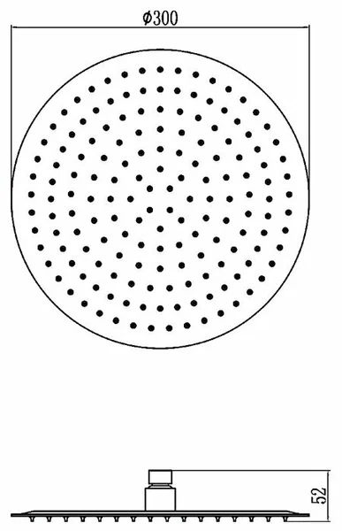 Лейка верхнего душа круглая сделана из нержавеющей стали, диаметр 300мм.