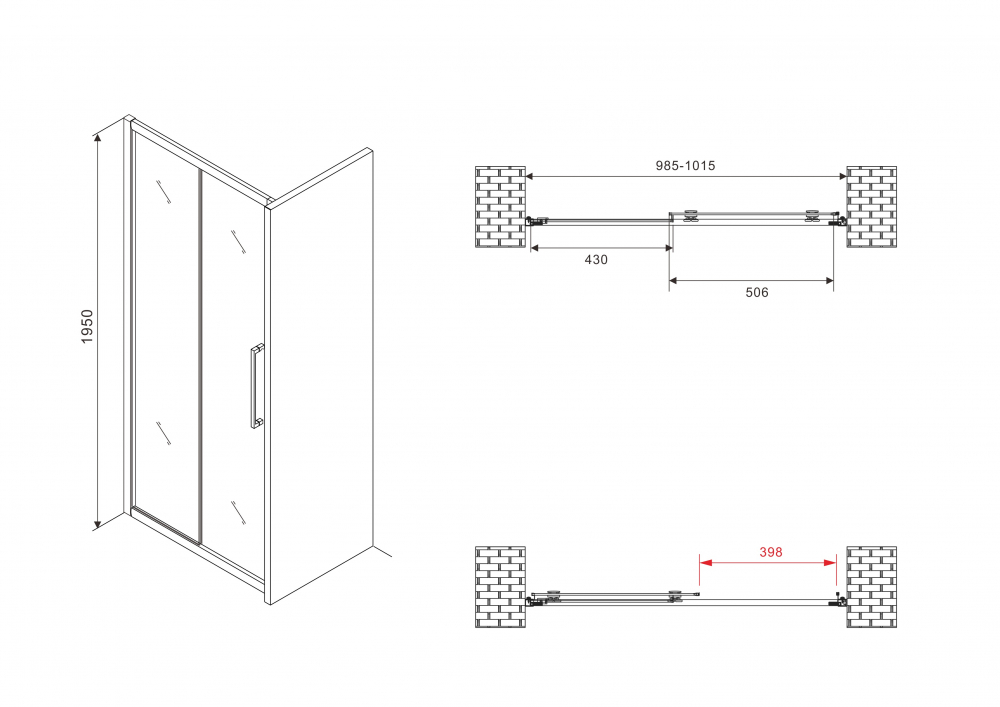 Душевая дверь Abber Schwarzer Diamant 100x195 стекло прозрачное, профиль хром (AG30100H)