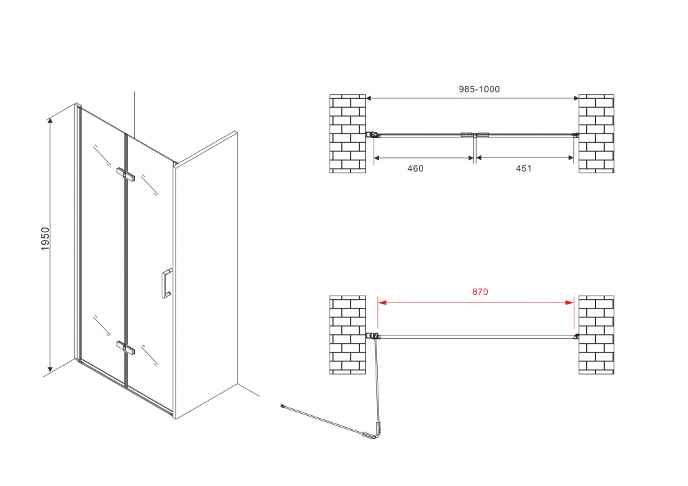 Душевая дверь Abber Zart 100x195 стекло прозрачное, профиль хром (AG08100P)