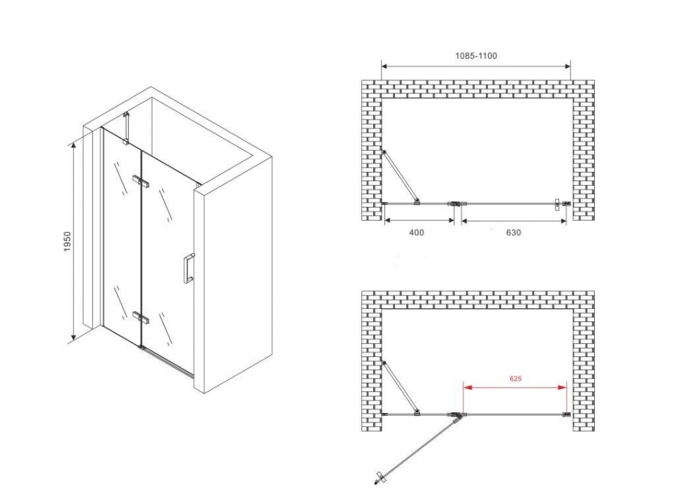 Душевая дверь Abber Zart 110x195 стекло прозрачное, профиль хром (AG08110)