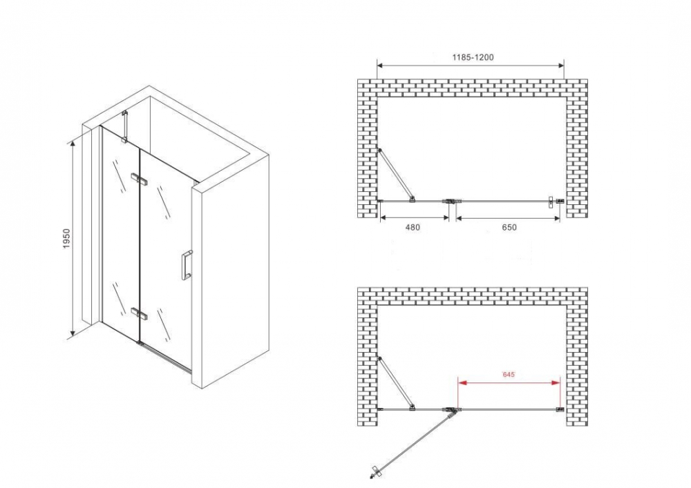 Душевая дверь Abber Zart 120x195 стекло прозрачное, профиль черный (AG08120B)