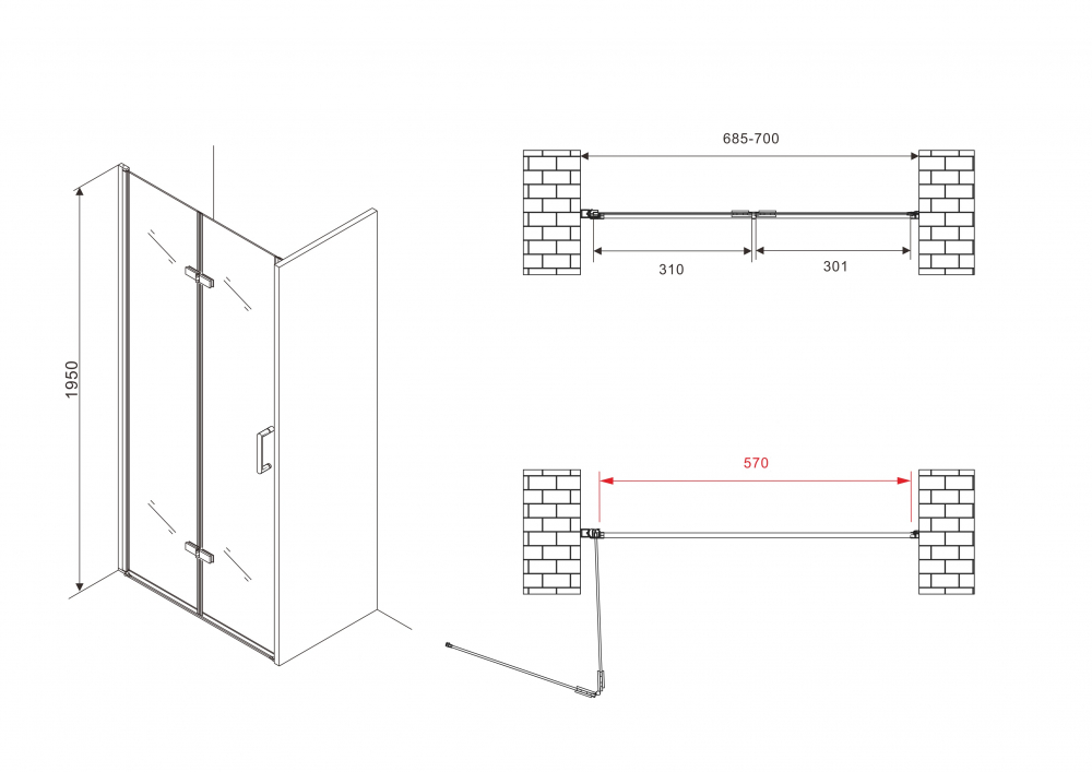 Душевая дверь Abber Zart 70x195 стекло прозрачное, профиль хром (AG08070P)