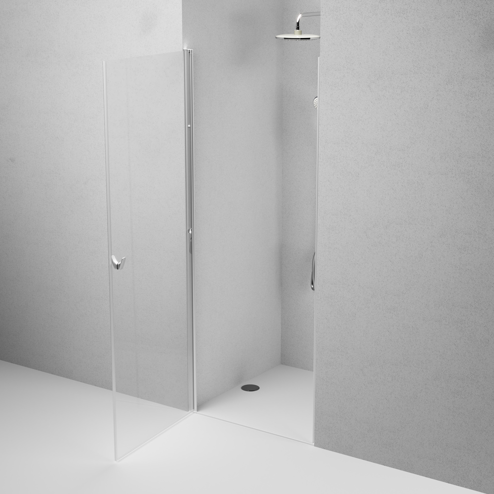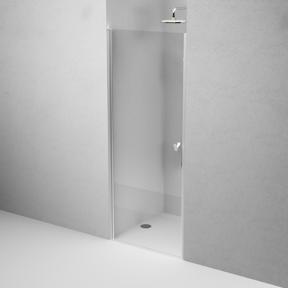 Надежный алюминиевый профиль окрашен методом порошкового нанесения при высокой температуре благодаря чему краска ложится на профиль идеально ровно а также проникает в структуру самого металла. Предустановочные профили в комплекте позволяют компенсировать неровность стен до 15 мм. Цвет профиля - матовый хром. Дверь выполнена из ударопрочного закаленного стекла толщиной 5 мм.