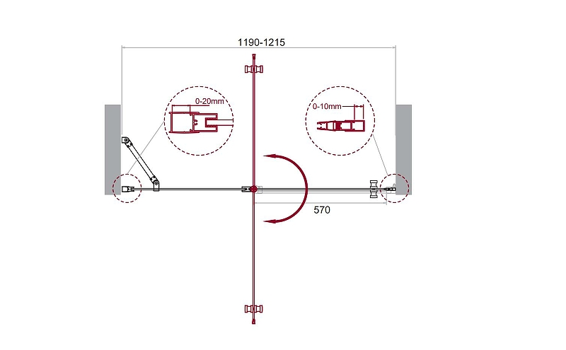 Регулировка ширины предусмотрена за счет боковых профилей, что позволяет без проблем установить изделие даже при кривизне стен.