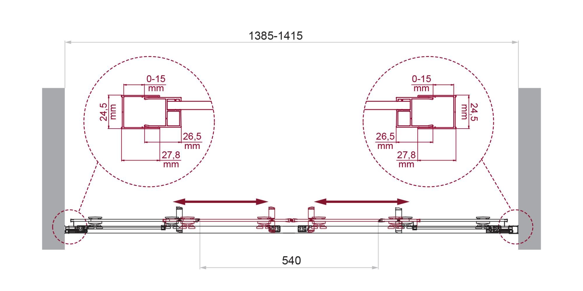 Душевая дверь BelBagno Luce 140x195 стекло прозрачное, профиль хром (LUCE-BF-2-140-C-Cr)