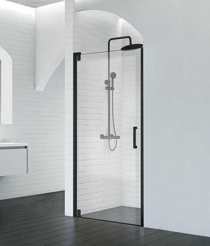 Душевая дверь Belbagno Marmi 92x195 стекло прозрачное с рисунком, профиль черный (MARMI-B-1-90-C-NERO)